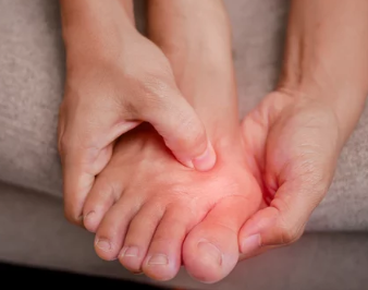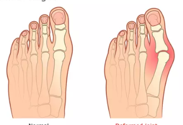 무지외반증의 가장 흔한 증상은 엄지발가락이 안쪽으로 휘어지는 현상입니다. 엄지발가락이 점차 안쪽으로 휘어져 발톱이 바깥쪽으로 돌출되며, 발가락의 변형이 진행됩니다.