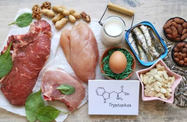 트립토판은 멜라토닌 합성을 돕는 필수 아미노산으로, 이를 포함한 음식과 함께 섭취하면 멜라토닌 생성이 촉진됩니다.